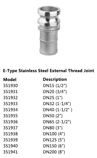 ? E-Type Stainless Steel External Thread Joint